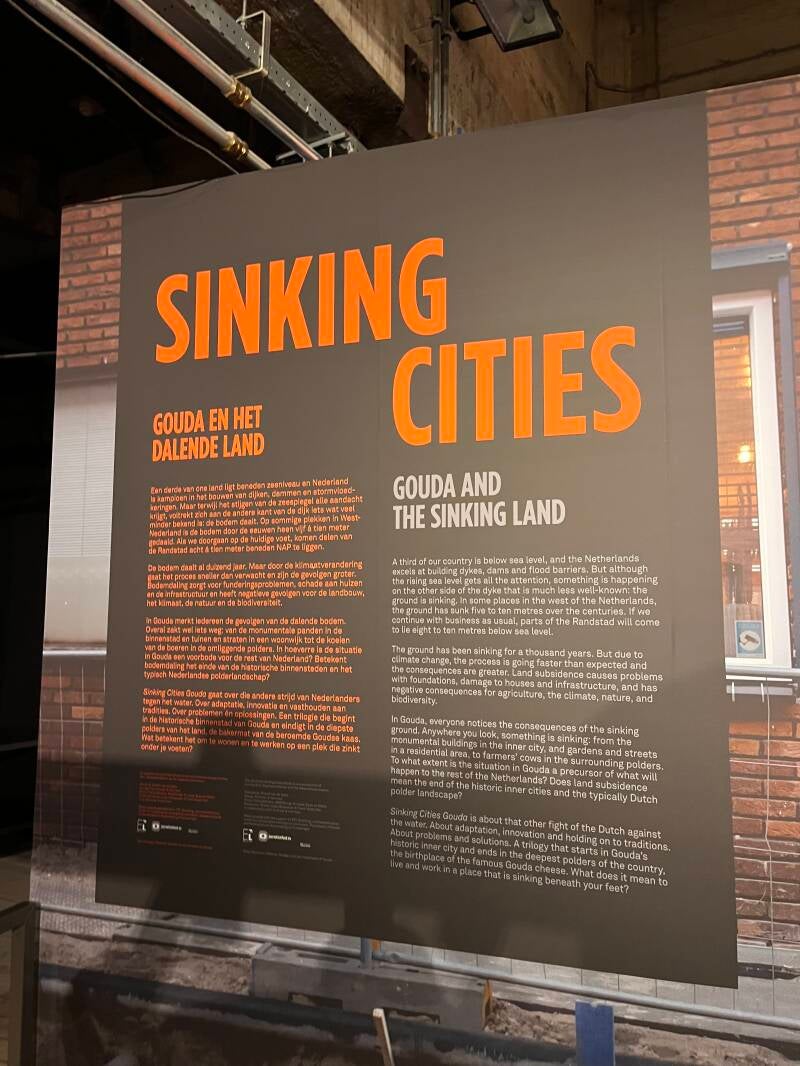 Twenty percent of cities worldwide are sinking. One in five people is affected. Streets and houses are sinking, cities are flooding, and restoration is costing billions. Moreover, land subsidence exacerbates climate change and biodiversity loss. And while the land is slowly sinking, sea levels are rising. And in Gouda – a city built on peat – soil subsidence has affected housing, agriculture, infrastructure and heritage for centuries.